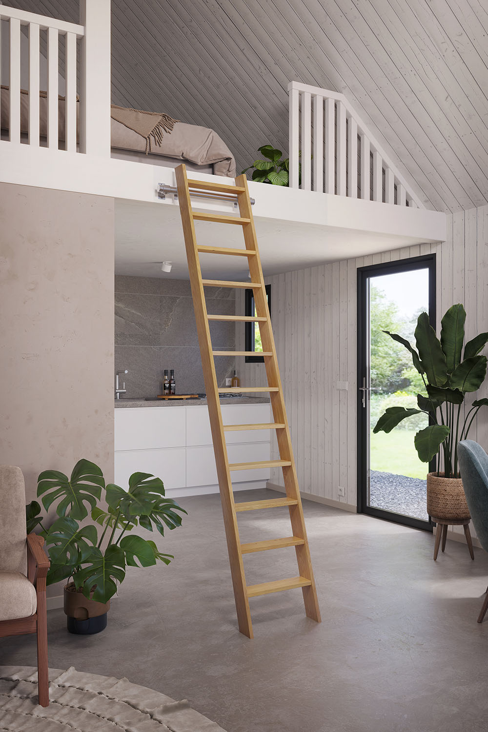 De bibliotheektrap wordt als compleet stuk geleverd. Je hoeft hem dus niet zelf te bouwen of in elkaar te zetten. De trap moet alleen nog worden gemonteerd, waarbij je ervoor kunt kiezen om hem permanent te bevestigen of semi-permanent. Bij deze laatste optie heb je de mogelijkheid om de trap na installatie nog te verplaatsen en dit kan worden gerealiseerd met het gebruik van onze accessoires. Accessoires zoals bevestigingshaken, bevestigingsstang en leuningen zijn er los bij te bestellen.
