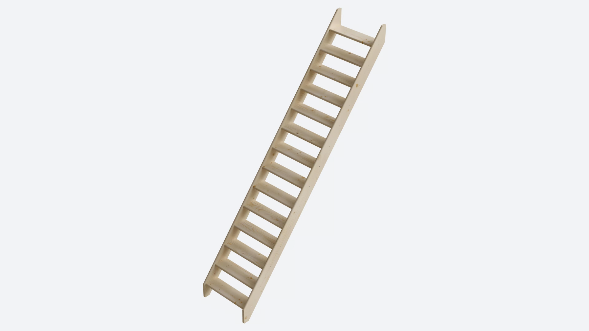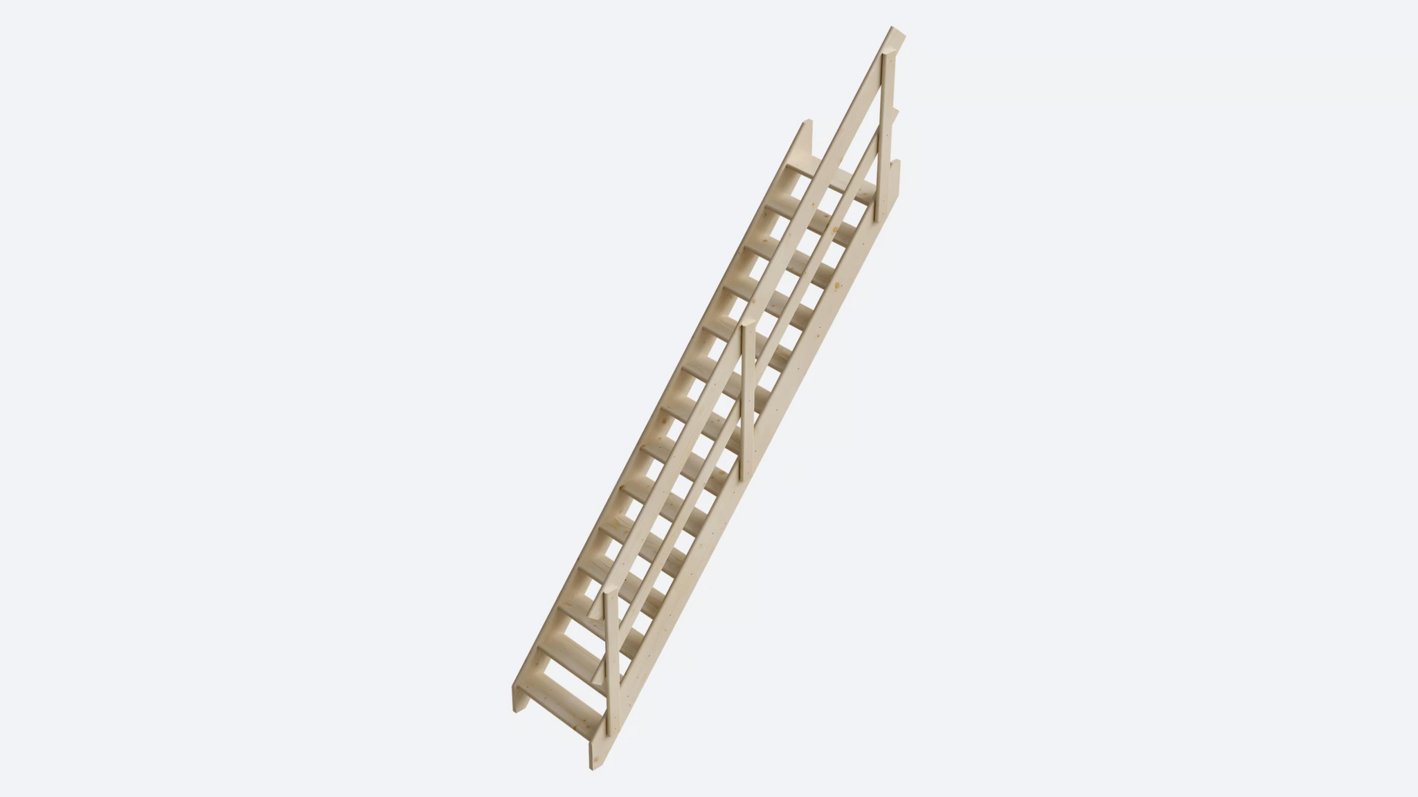 Deze steektrap is een ruimtebesparende oplossing en biedt een open, lichte constructie. Dankzij de rechte vorm en steile helling heb je minder ruimte en treden nodig. De trap is geschikt voor verschillende ruimtes, zoals woonkamers met een split level, vide, of vliering. Een leuning kan optioneel worden meegeleverd voor extra veiligheid.