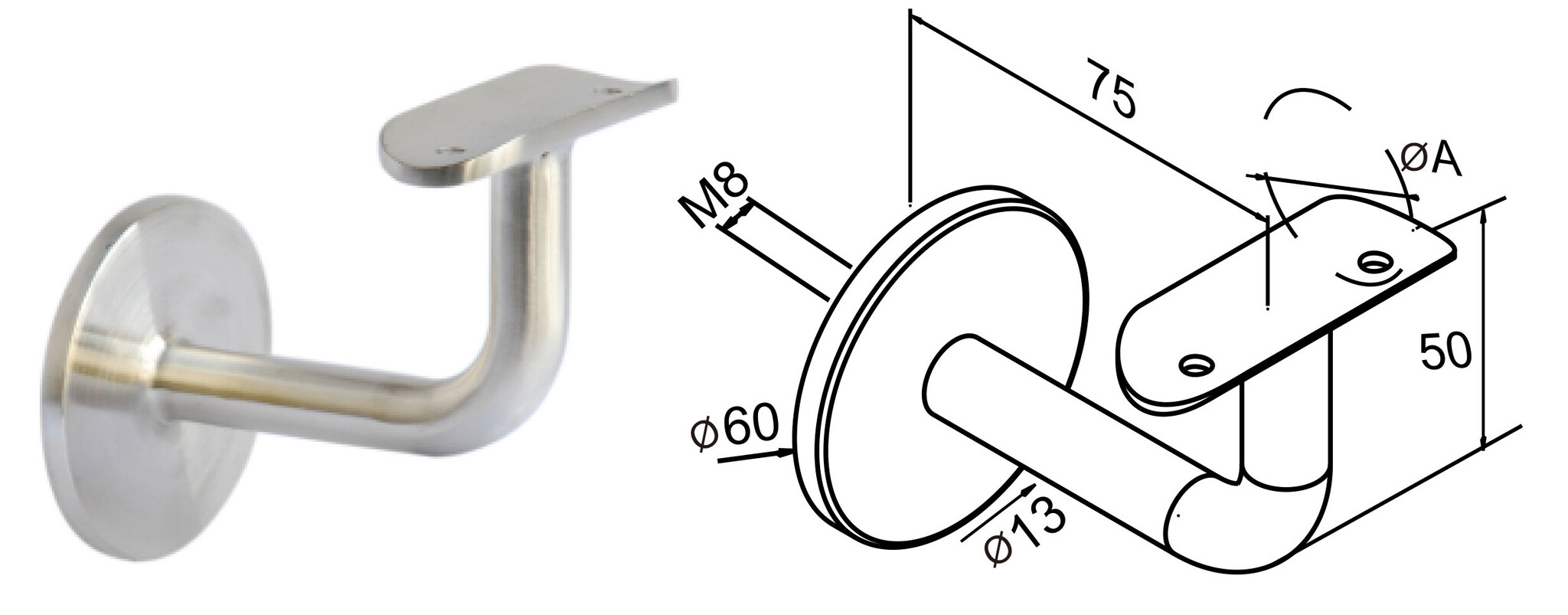 RVS draagbeugel om onze houten trapleuning aan de muur te bevestigen. Voor binnen gebruik. De beugel is gemaakt van roestvrij staal. Per 1 stuk verkocht.- Klantenbeoordeling 9.1/10