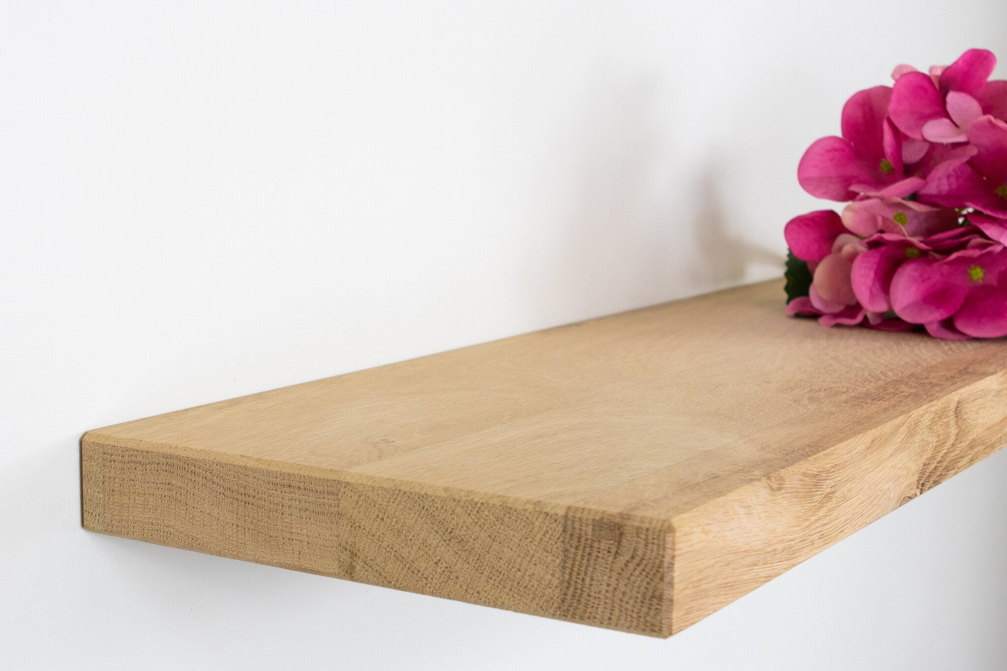De wandplank eiken is van hoogwaardig eikenhout. De kwaliteit en de autheniciteit van het eikenhout is goed te zien in de structuur en uitstraling van de eikenhouten wandplank.